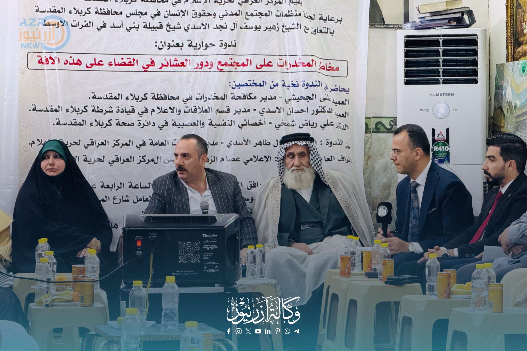 شهدت محافظة كربلاء المقدسة إقامة ندوة حوارية موسعة بعنوان (مخاطر المخدرات على المجتمع ودور العشائر في القضاء على هذه الآفة)، نظمها المركز العراقي لحرية الإعلام، برعاية لجنة منظمات المجتمع المدني وحقوق الإنسان في مجلس محافظة كربلاء، وبالتعاون مع الشيخ زهير يوسف آل نجل الأسدي شيخ قبيلة بني أسد في الفرات الأوسط.